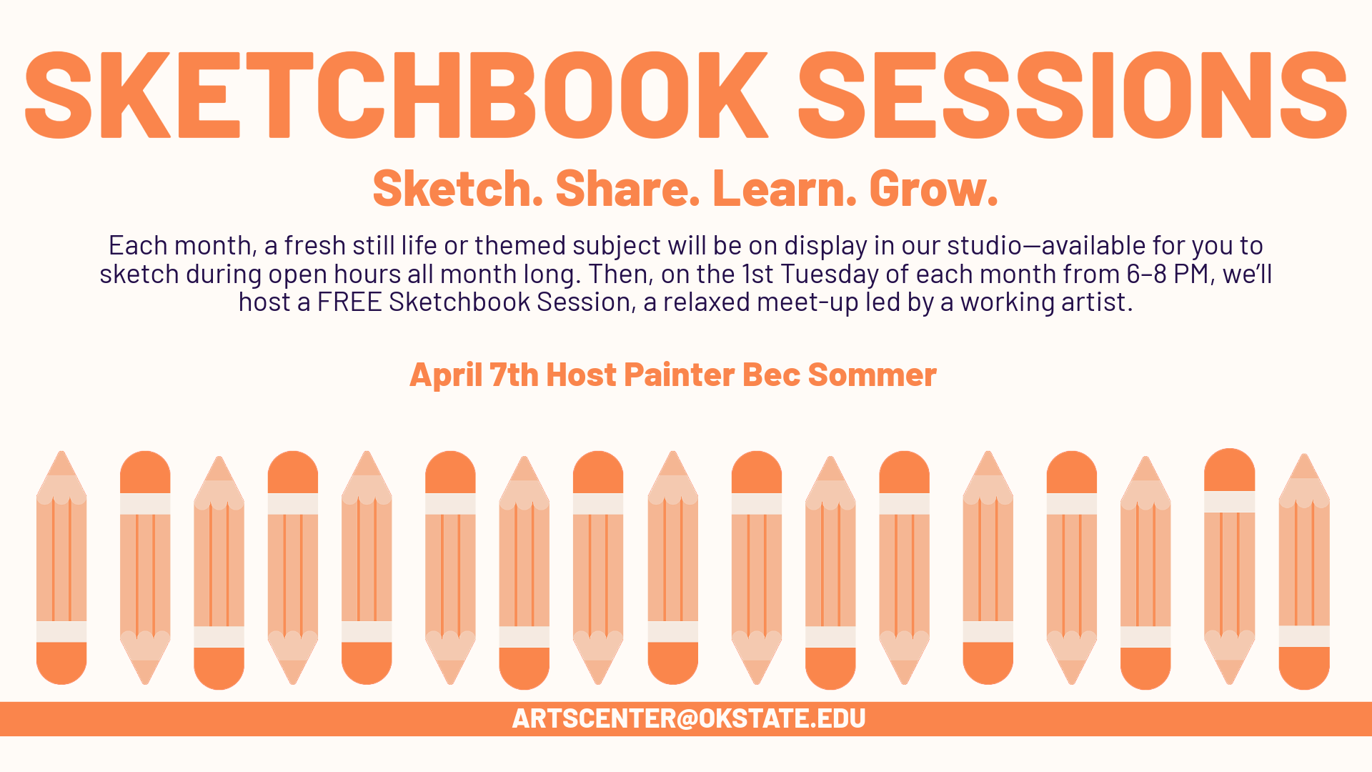On the 1st Tuesday of each month from 6–8 PM, we’ll host a FREE Sketchbook Session, a relaxed meet-up led by a working artist. There will be a fresh still life or themed subject on display in our studio to work from. This display will continue to be available for you to sketch during open hours all month long.