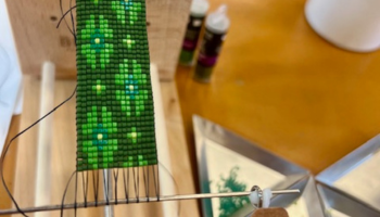 Learn to make a colorfully patterned bracelet using seed beads and a beading loom in this one day “make and take” class. You will have your choice between 2 patterns and 2 different color schemes to create your own bracelet- one tiny bead at a time! You will also make ends and a closure using real leather and a silver tone button.