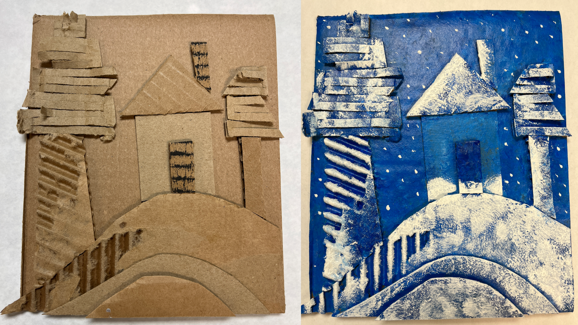 In this special holiday themed class, students will learn how to construct a collagraph plate, making use of various textures and techniques. They will also learn how to properly ink their plate and roll it through our printing press! Our theme is "a holiday scene," which could be a cozy indoor scene by the fire or a snowy nature scene, a snowman, or a Christmas tree. Students will make multiple prints, donating one to the center for our holiday display in the lobby. Their work will be up from mid-November until early January for everyone at the center to enjoy!